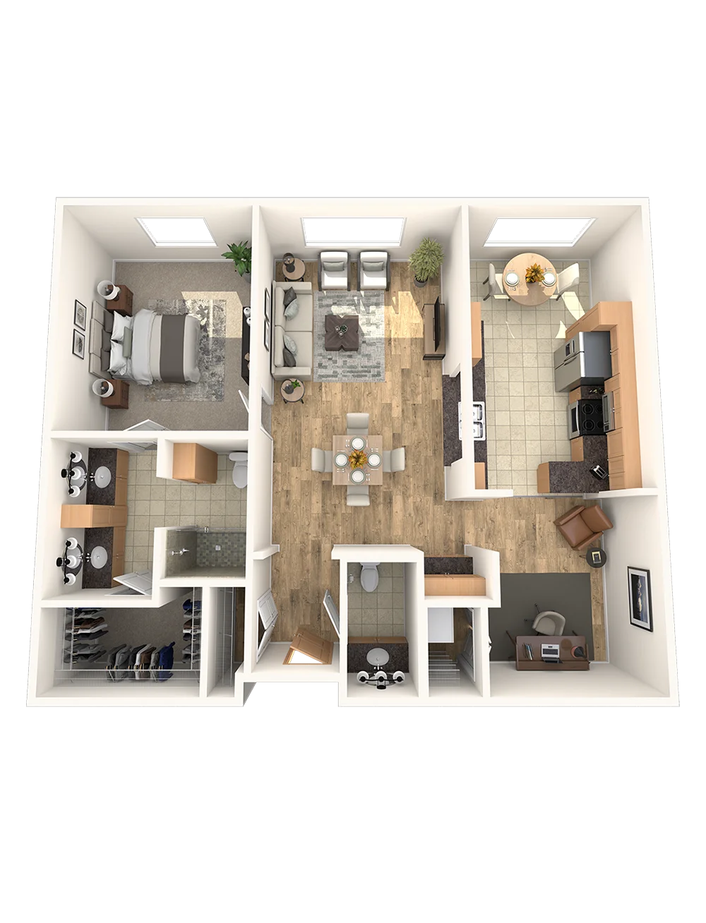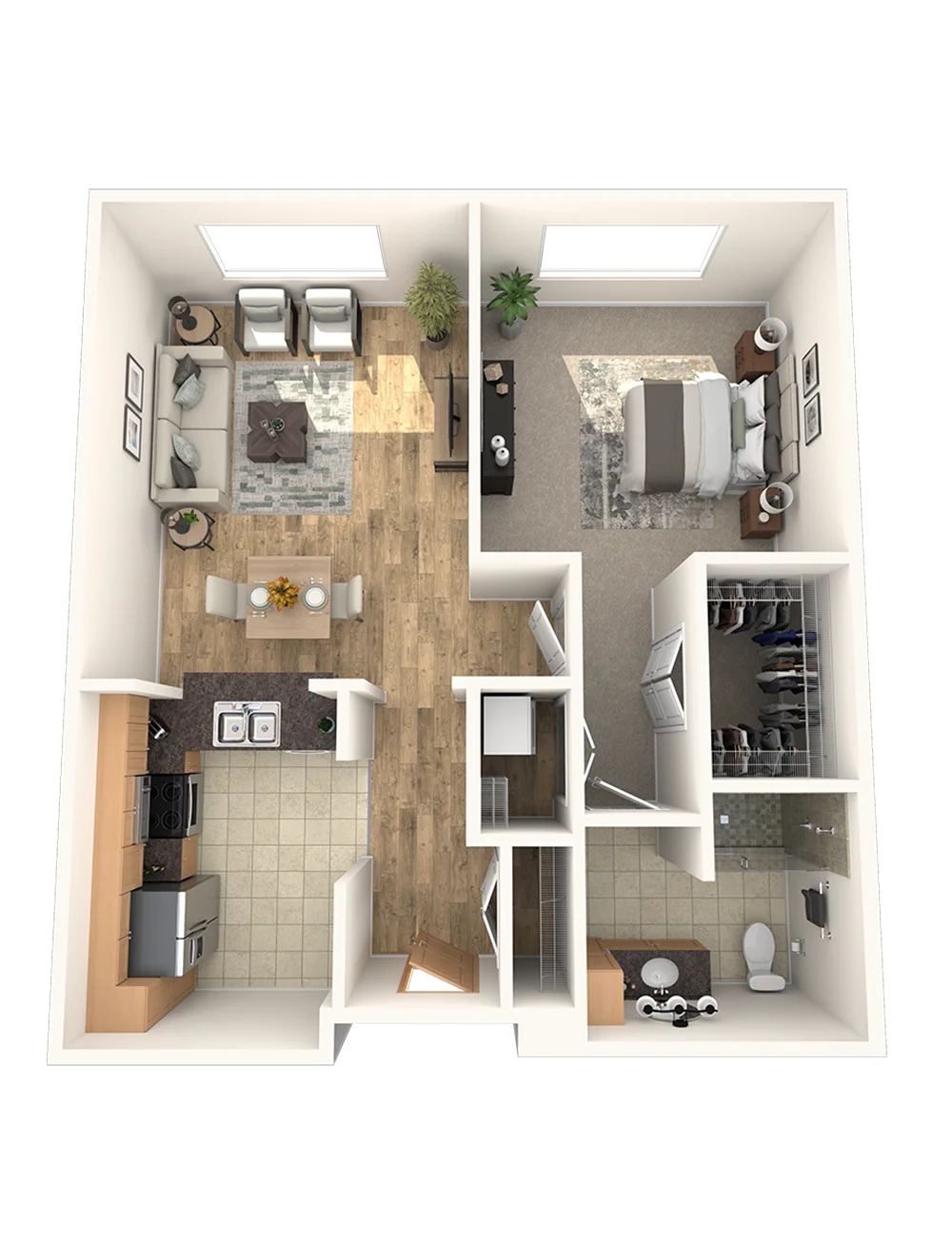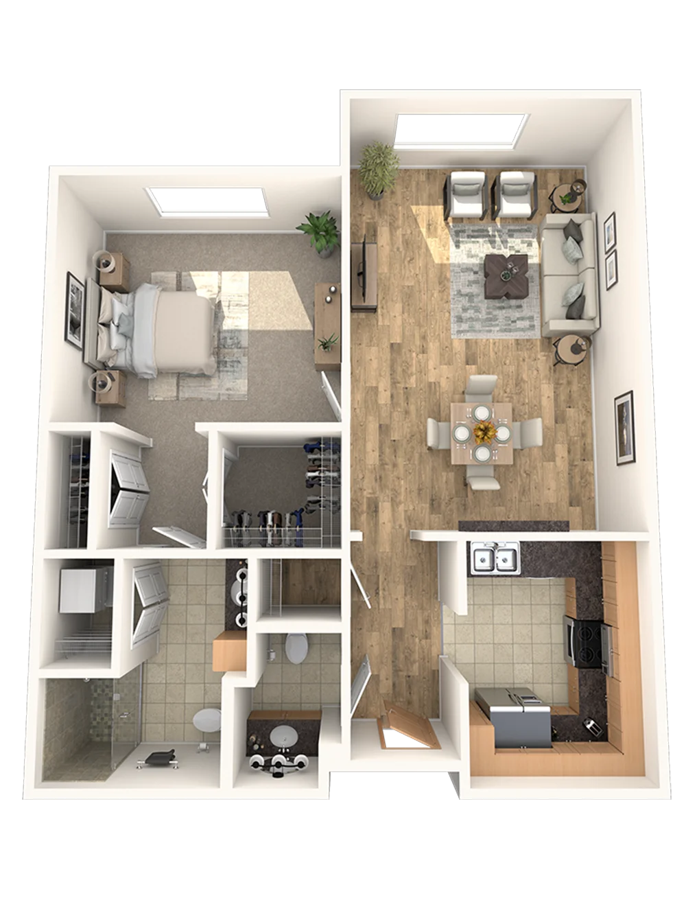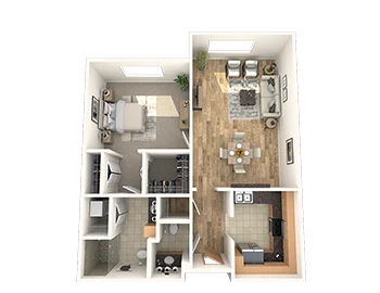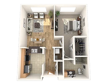 Enjoy elegance and charm in The Baird, a 1-bedroom, 1-bath residence which offers an open-concept living space, a spacious bedroom suite with a walk-in closet, and a full bathroom. Luxury living in a beautiful home.