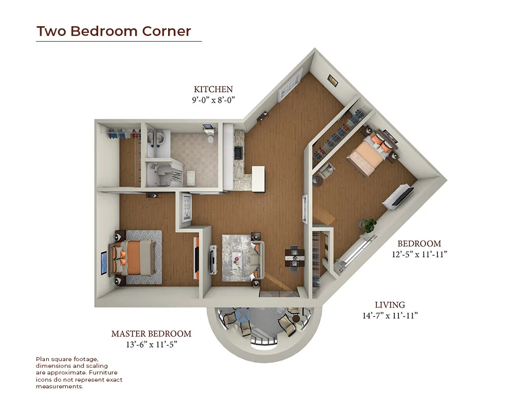 The Two Bedroom Corner is a spacious, airy retreat with a modern open living space flanked by two bedrooms. The living area opens onto an elegant outdoor patio perfect for enjoying morning coffee or visiting with friends.